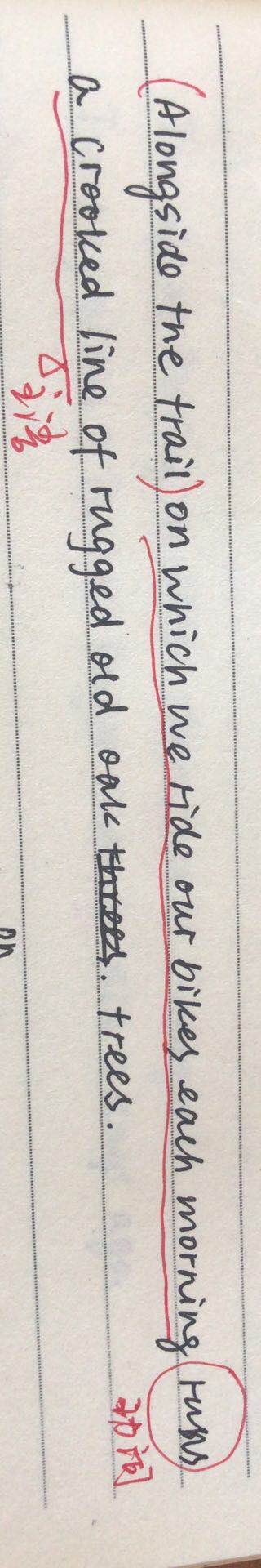我觉得是倒装 主语在后面 一排树是一个整体吧 强调的是 trees 前面修饰的a line